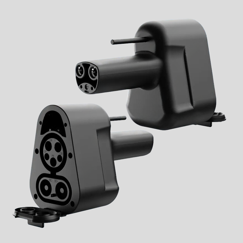 The adapter supports up to 500A / 1000V DC fast charging (up to 500A at liquid-cooled superchargers and around 300A at most standard stations, depending on the charger) and up to 80A AC Level 2 charging.